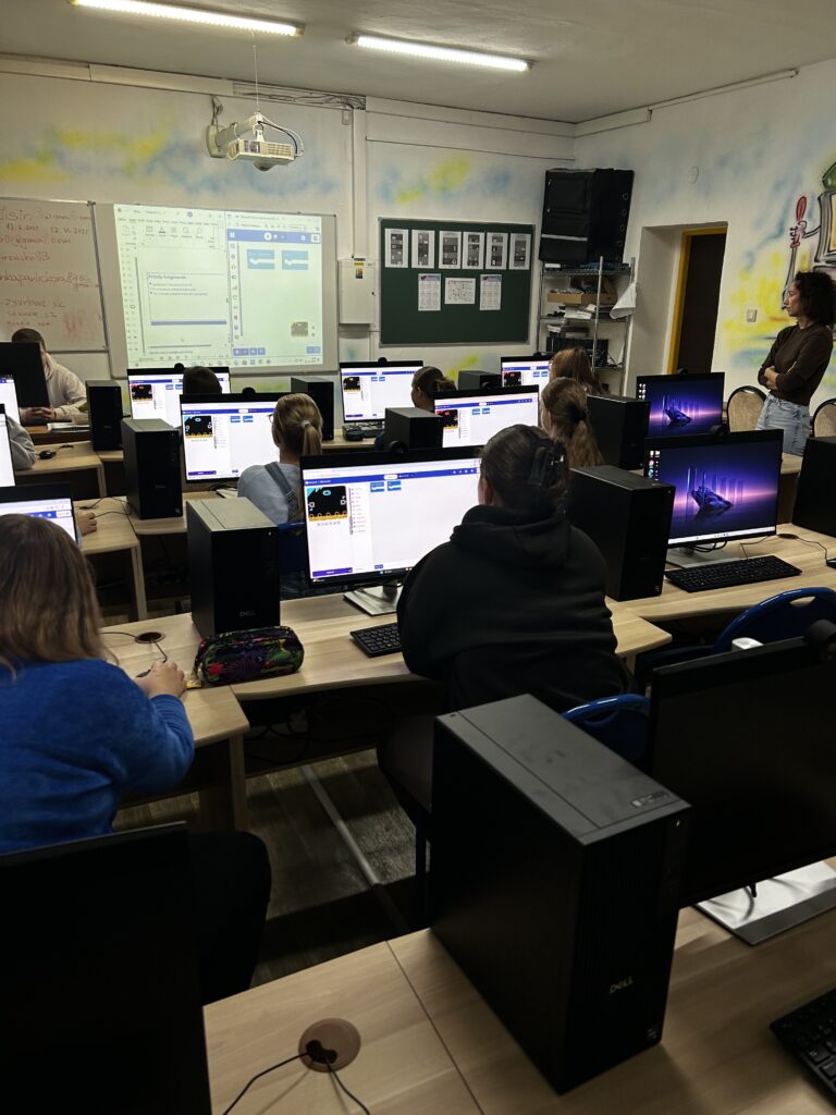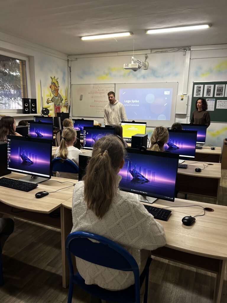 Dnes sa naše šikovné žiačky z 5. a 7. ročníka zúčastnili zaujímavých workshopov zameraných na programovanie, ktoré pripravila organizácia Aj Ty v IT. Siedmačky nadviazali na svoje predchádzajúce skúsenosti z minulého workshopu a tentoraz sa pustili do projektu Micro:bit – Tamagoči. Vďaka tejto aktivite si zopakovali a rozšírili vedomosti o programovaní mikropočítačov, pričom vytvorili vlastné digitálne „zvieratko“. Piatačky sa pustili do práce s LEGO Spike Prime stavebnicou. S nadšením skladali, zapájali a programovali svoje LEGO výtvory, ktoré sa im nakoniec podarilo aj rozhýbať.