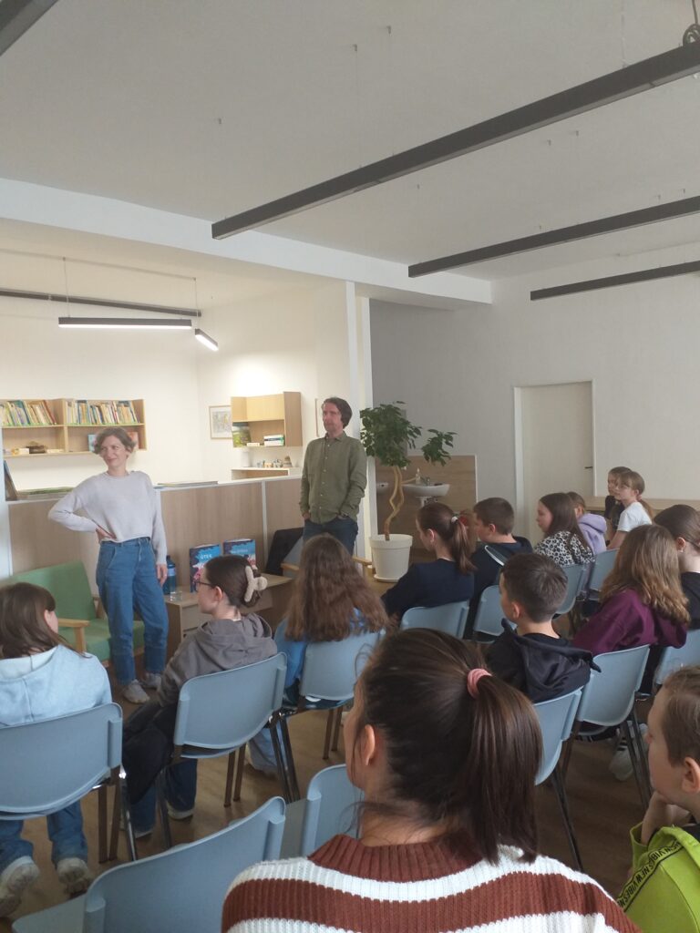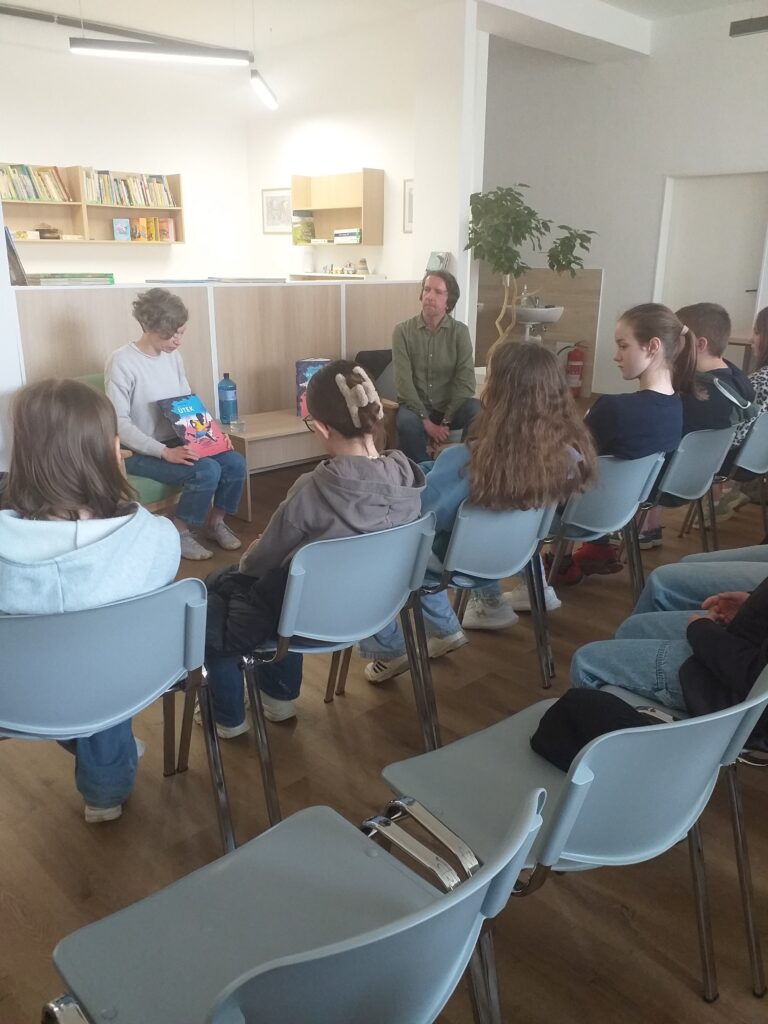 Vo štvrtok 22.5. žiaci 5.A a 5.B navštívili Mestskú knižnicu vo Vrbovom, kde si prezreli výstavu ilustrácií Daniely Olejníkovej z knihy Mareka Vadasa-Útek spojenú s besedou s autormi. Pani ilustrátorka a pán spisovateľ zaujímavo porozprávali deťom, ako a kedy knižka vznikla. Dotýka sa témy migrácie očami malého chlapca, ktorý sa v živote stretáva s odmietaním, predsudkami a nezáujmom o osudy iného človeka. Deti zahrnuli autorov mnohými otázkami, na ktoré im ochotne odpovedali.
