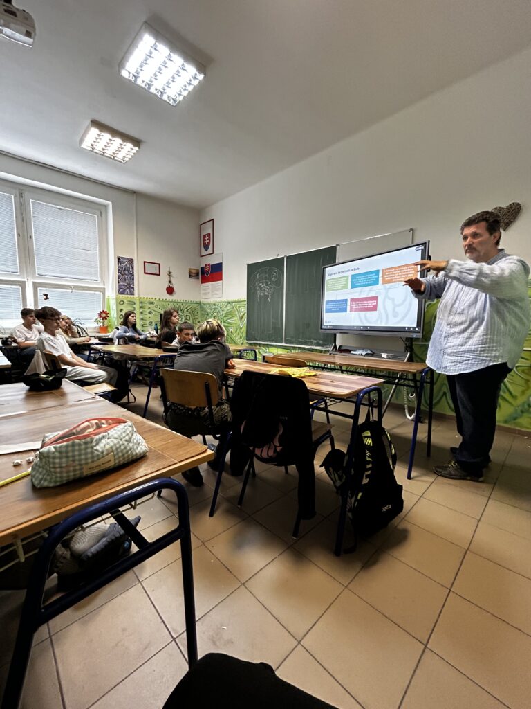 V piatok našu školu navštívil Mgr. Tomáš Földes, lektor zo Slovenského národného strediska pre ľudské práva (SNSĽP). Pre žiakov 8. ročníka si pripravil zaujímavú a podnetnú prednášku na tému šikanovania a kyberšikany, ktorej sa zúčastnili spolu s pedagogickým dozorom.