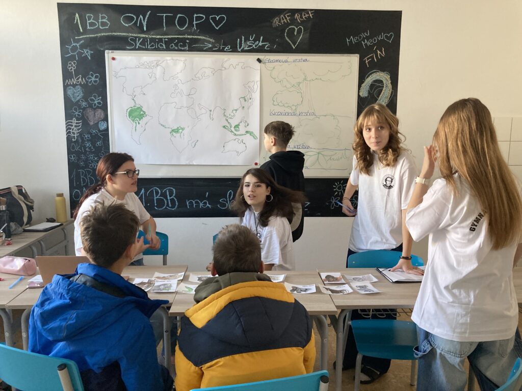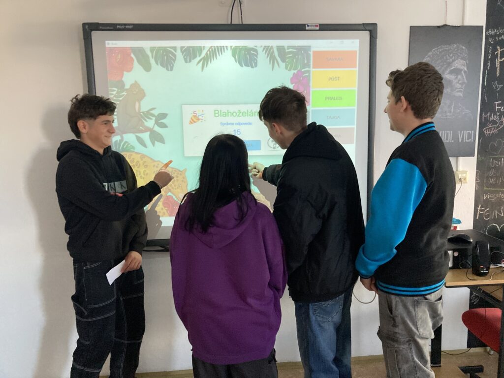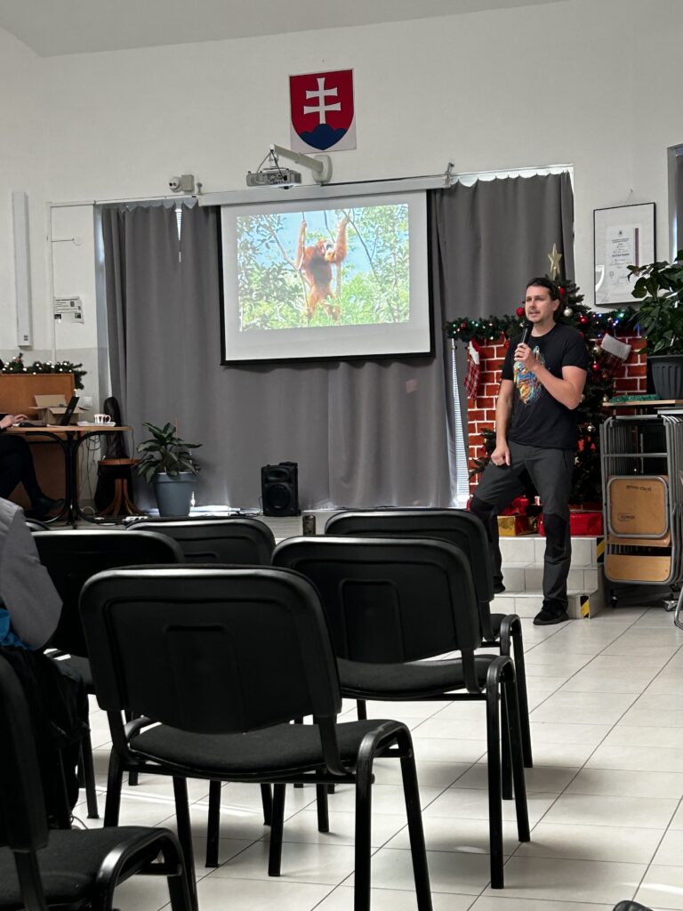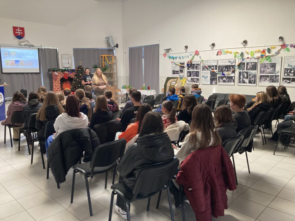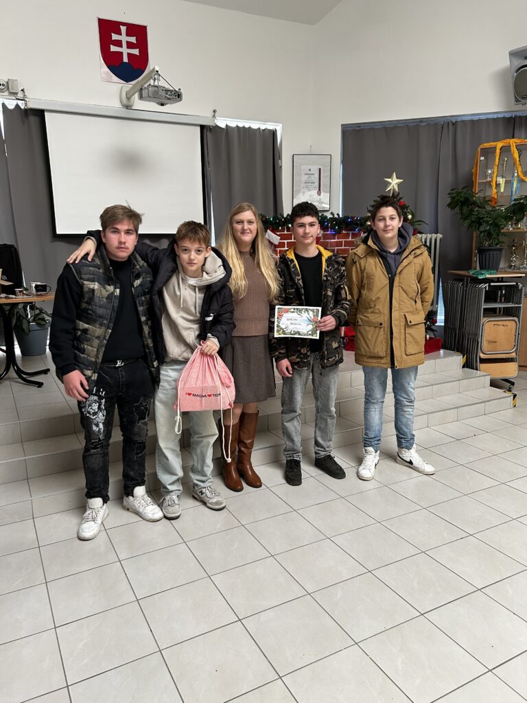 Dňa 5.12.2024 navštívili ôsmaci Gymnázium J.B.Magina, ktoré už po niekoľkýkrát realizovalo Ekodeň. Začali prezentáciou o dažďových pralesoch, o ochrane prírody, o zvieratách, spomínal sa palmový olej, fotopasce, pytliactvo…. Našim ôsmakom sa tento deň páčil. Téma im pripadala zaujímavá, záživná, dozvedeli sa množstvo informácií. Ešte záživnejšie však boli súťaže a aktivity. Najskôr v exteriéri, kde hľadali ukryté papieriky a následne ich podľa indície spájali na základe zistených pojmov. V interiéri určovali na základe nápovedy zviera, umiestnili ho na mape podľa oblastí, kde sa daný živočích vyskytuje. Zaujímavé boli aj informácie o typoch krajín- púšť, tundra, prales, savana, tajga. Aktivity ukončili čítaním s porozumením, pričom vyplnili test a získali diplom. Celú akciu naši žiaci hodnotia ako parádnu, zábavnú a plnú aktivít. Touto cestou ďakujeme Gymnáziu J.B.Magina za výborne pripravený Ekodeň.