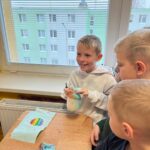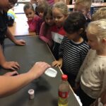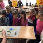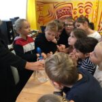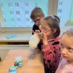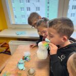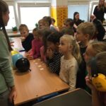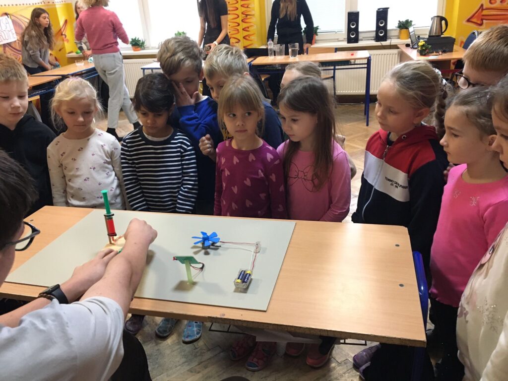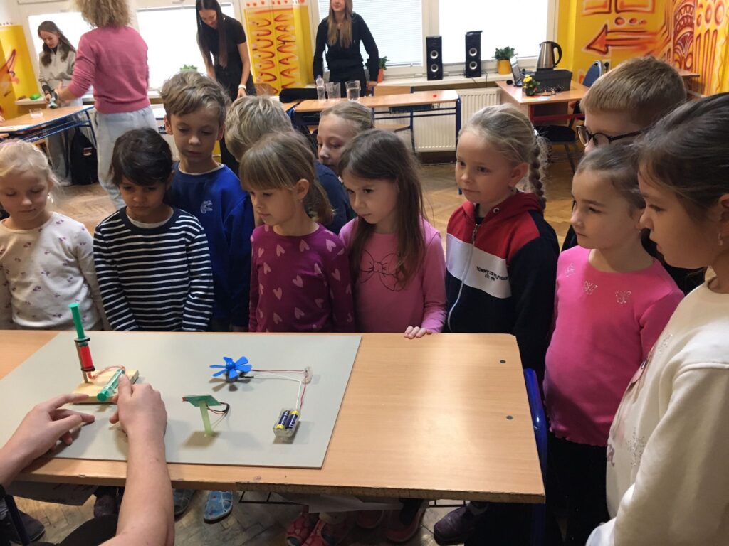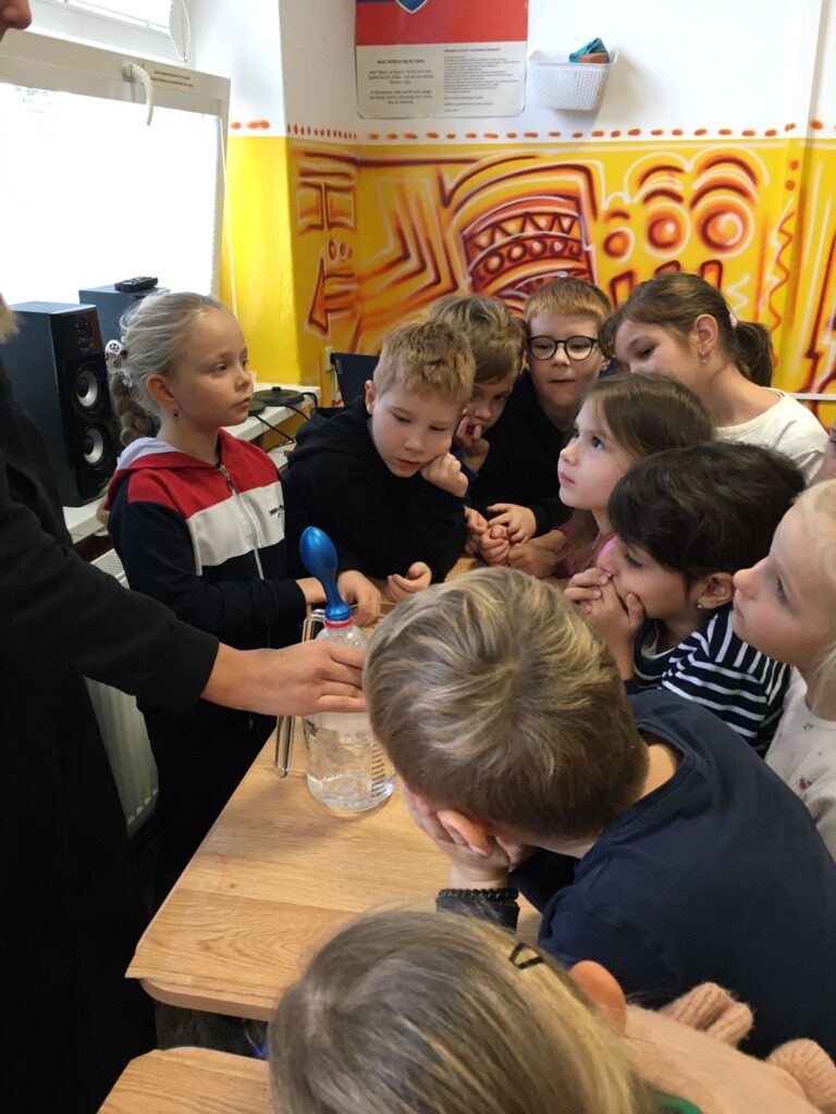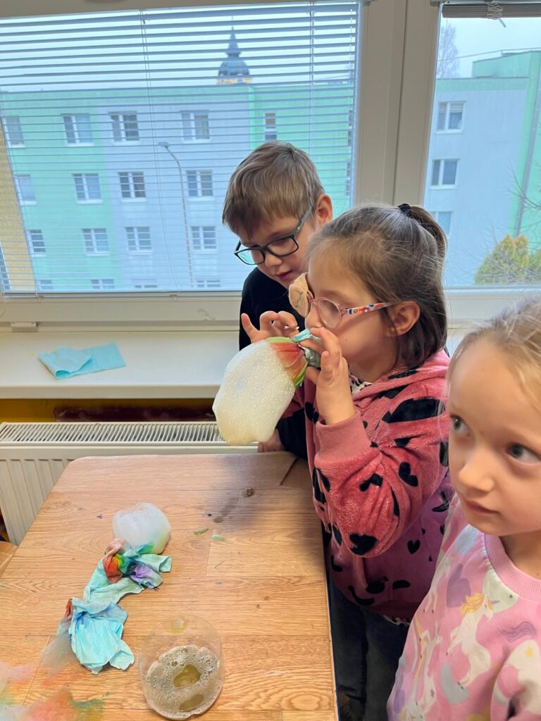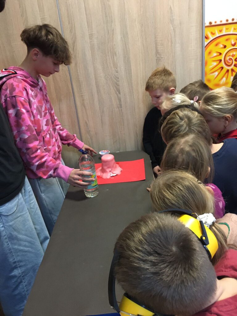 V utorok zažili žiaci prvého ročníka mimoriadne zaujímavé dopoludnie. Žiaci 8. A triedy pod vedením učiteľky Mgr. B. Stopjakovej si pre nich pripravili sériu hravých a pútavých aktivít, vďaka ktorým mohli prváci nahliadnuť do fascinujúceho sveta fyziky. Starší žiaci sa ujali úloh malých pedagógov a prvákom vysvetľovali, skúšali a ukazovali rôzne pokusy. Žiaci mohli ovládať elektrické autíčko, overili si ako môže kvapalina prenášať silu pomocou hydraulického zariadenia. Prvákov nadchla aj modelová sopka, ktorá pred ich očami “vybuchla”, či farebná dúha z mydlovej vody, kde pochopili, ako sa svetlo láme a mieša. Veľký úspech mal aj pokus s potápačom, pri ktorom si deti odskúšali zmenu tlaku v praxi. O dobrú náladu sa postarala aj elektrostatika, pri ktorej balóny lietali, lepili sa a neposlúchali.