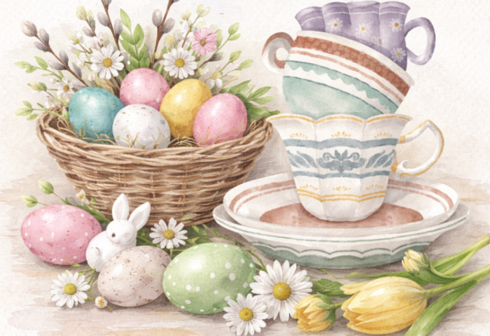 Zbierka sklenených a porcelánových vecí na Veľkonočné trhy