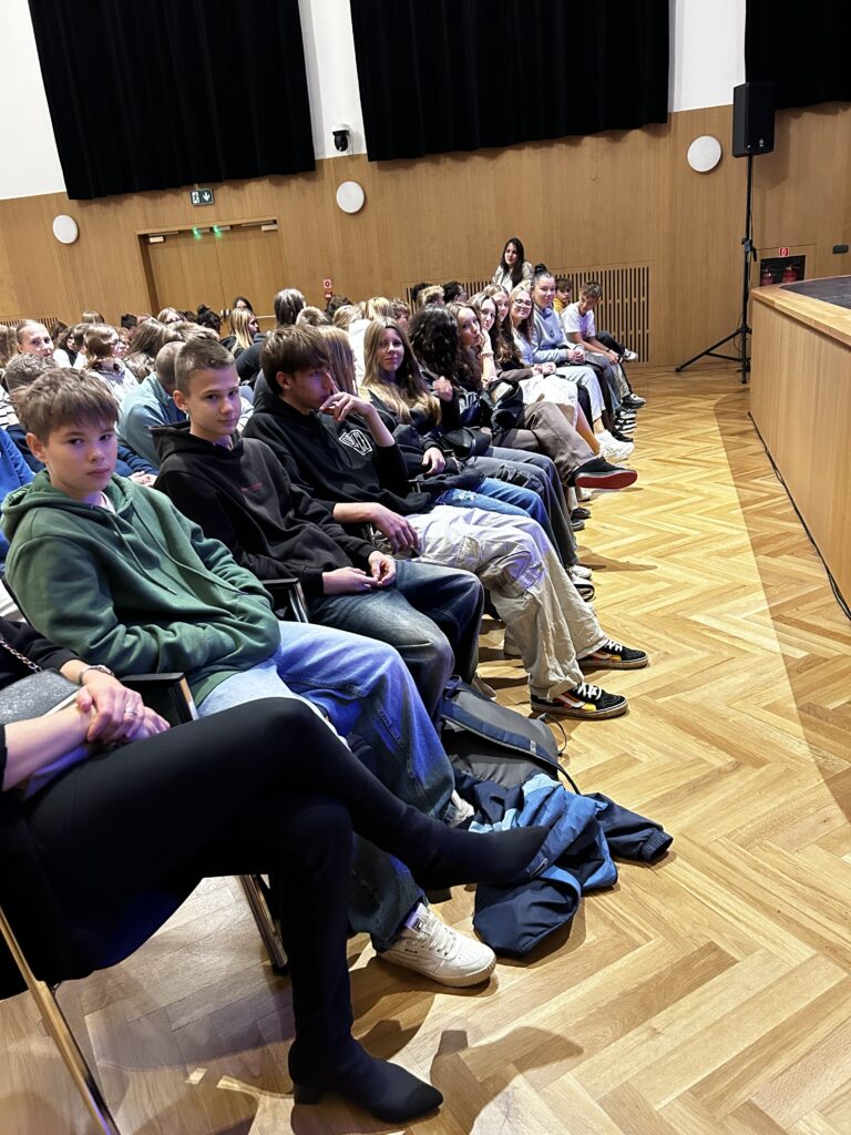 Žiaci 8.A, 9.A a 9.B sa 30.9.2025 zúčastnili divadelného predstavenia v Mestskom divadle Trenčín. Na javisku si vychutnali klasickú slovenskú komédiu ,,Ženský zákon” od Jozefa Gregora Tajovského, ktorá patrí medzi stálice slovenskej dramatickej tvorby.