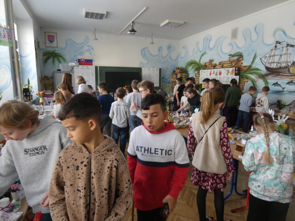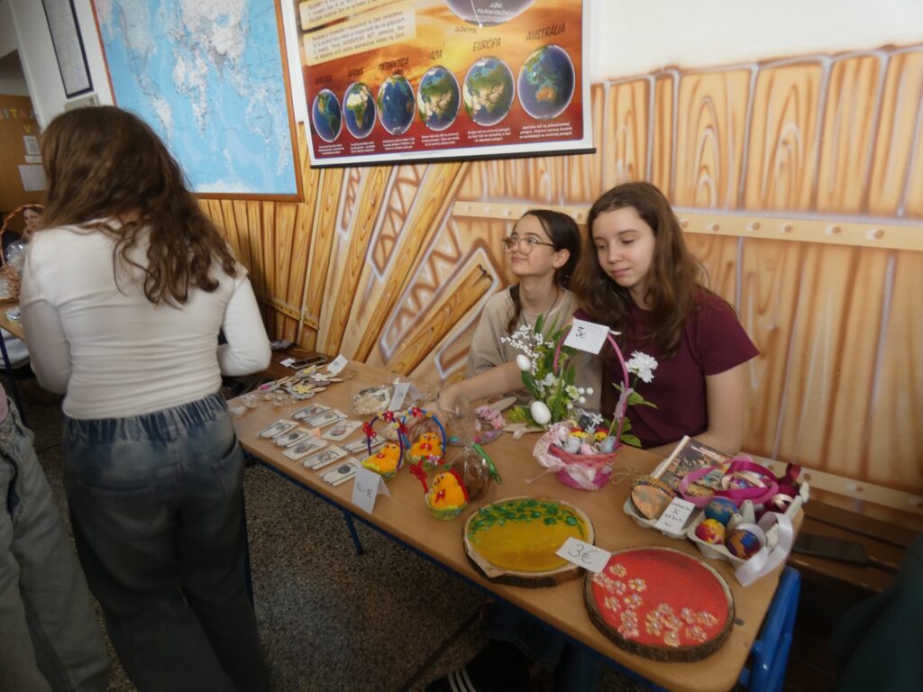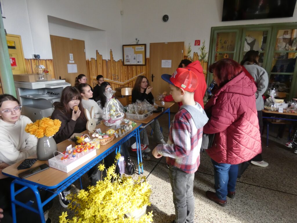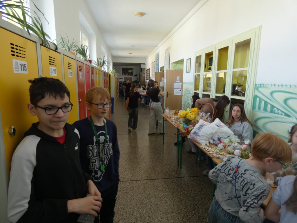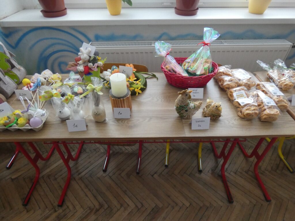 Veľkonočné trhy v našej škole priniesli príjemnú jarnú atmosféru plnú radosti, farieb a dobrej nálady. Do príprav sa zapojili žiaci aj učitelia, ktorí s nadšením predávali ručné výrobky, pečivo, sladkosti aj zmrzlinu. Návštevníci si mohli vybrať z množstva krásnych a chutných produktov, ktoré si deti pripravili. Súčasťou trhov bolo aj občerstvenie v školskej jedálni, kde si mohli všetci pochutnať na rôznych nátierkach a zahriať sa šálkou zázvorového čaju.